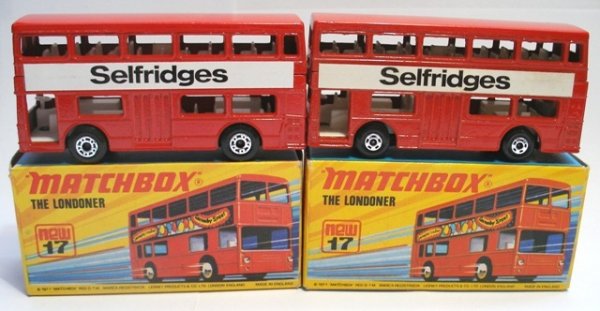Toy Lot2 days LeftLarge Lot Vintage Diecast Cars / Trucks Corgi Hot Wheels Lesney Matchbox Majorette & etcMar 02, 2026LOT OF TOY CARS AND BUSFeb 26, 2026Matchbox and Gate, Die-Cast Collectible Vehicle Collection, Die-Cast Metal, 1990s-2000sFeb 26, 2026Pressed Steel Trucks2 days Left(6) 1990s-00s Assorted Diecast, Various Mfgs - MIB-NOS3 days LeftLondon Buses Pre-War C26 To The Modern Titan Montage Metal Wall ArtMatchbox, 9 ModelleFeb 27, 2026Matchbox - MOKO - No 5 - Double Decker Bus6 days LeftTri-Ang "London Transport Routemaster" Double-Decker BusMatchbox, Pills, Potions & Powders Special Edition Gift Set, Die-cast, 1993Feb 26, 2026Matchbox New 42 - Mercedes Container Truck6 days LeftMatchbox, 2x Feuerwehr & K-10 LKWFeb 27, 2026Matchbox - MOKO - No 56 - London Trolleybus6 days Left5 Pre-Production Matchbox Yesteryear Toy CarsFeb 28, 2026Hot Wheels Transporter Playsets, Red and GrayMar 01, 2026
