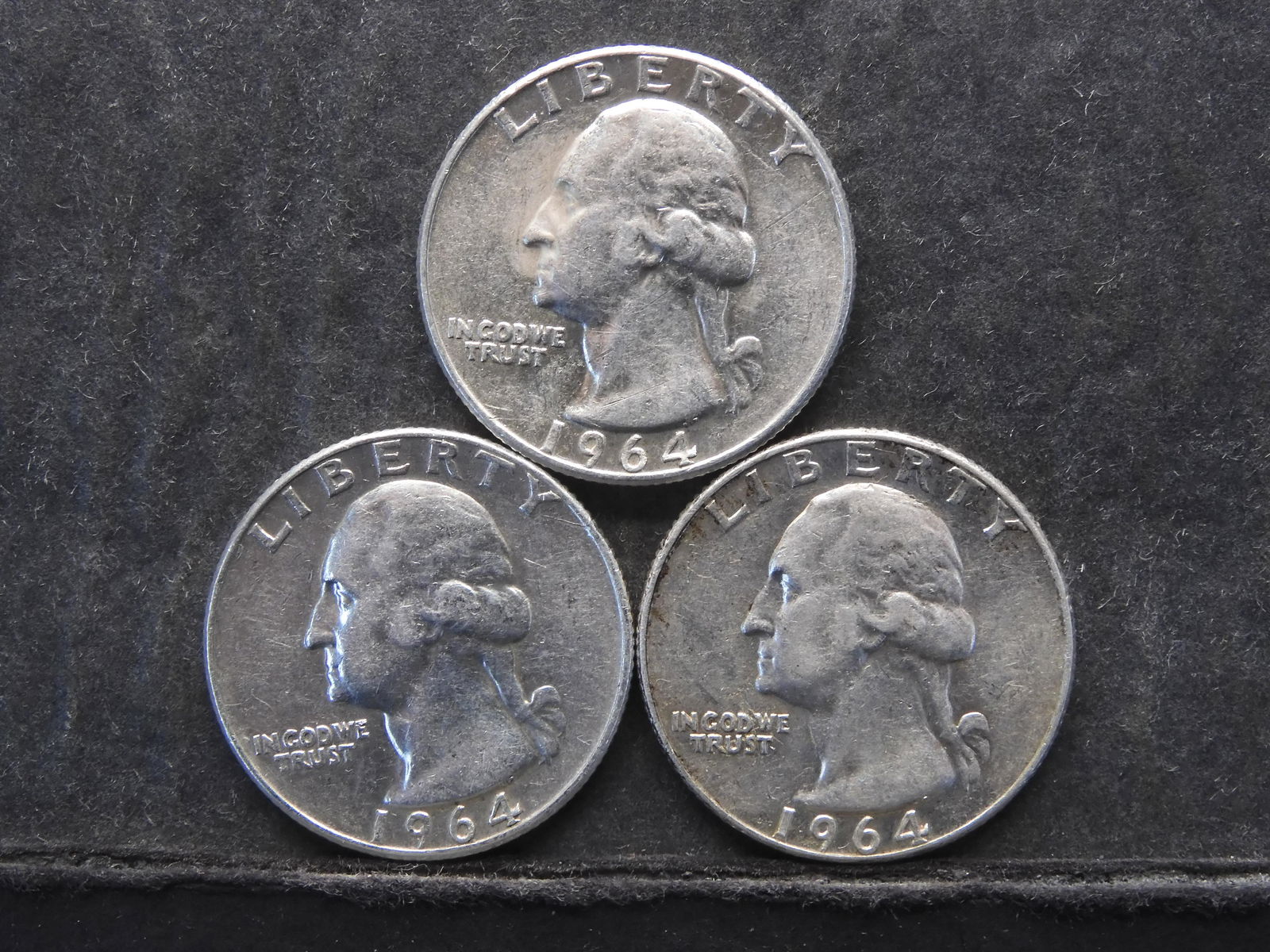 (3) 1964-D (90% SILVER) WASHINGTON QUARTERS