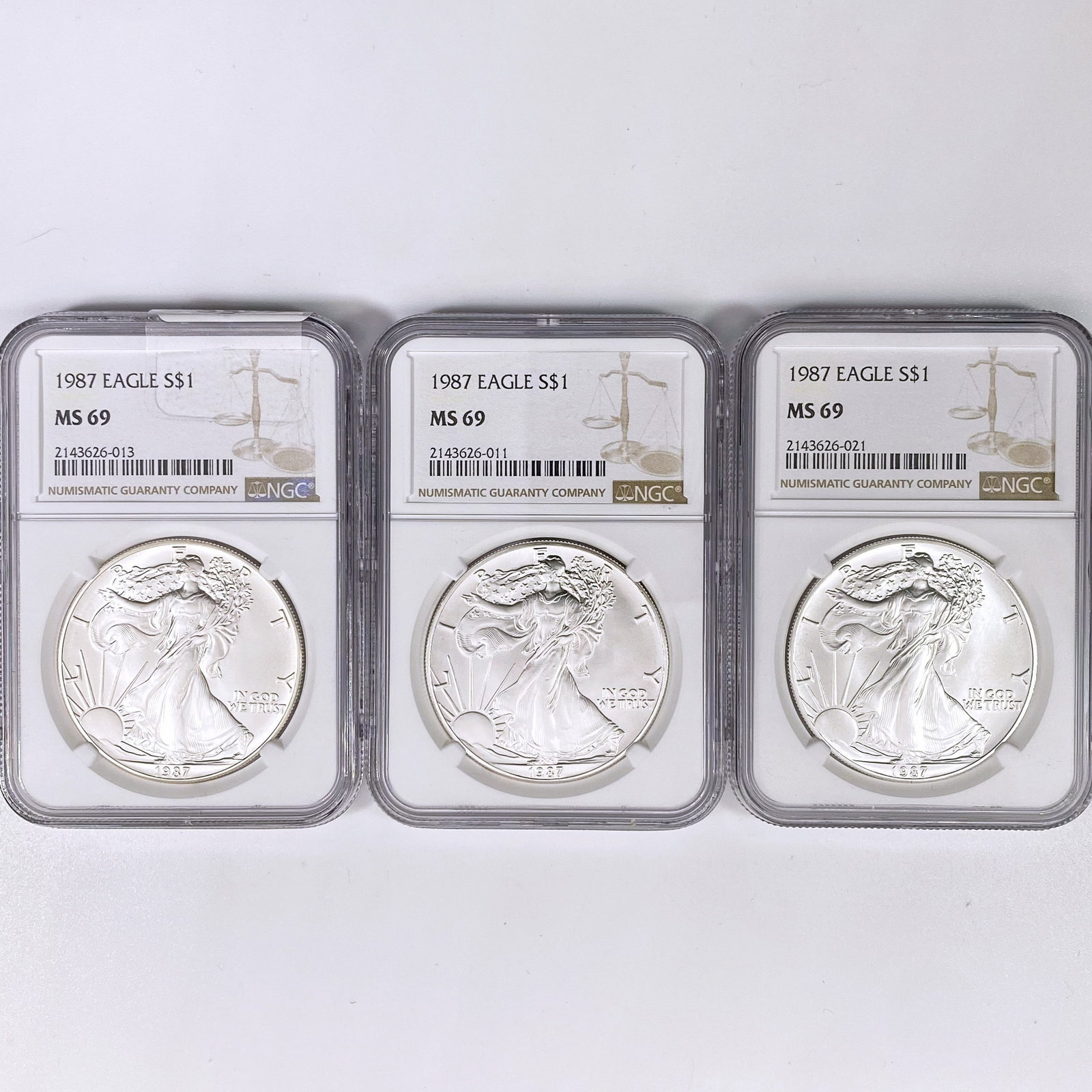 (3) 1987 American Silver Eagle NGC MS69
