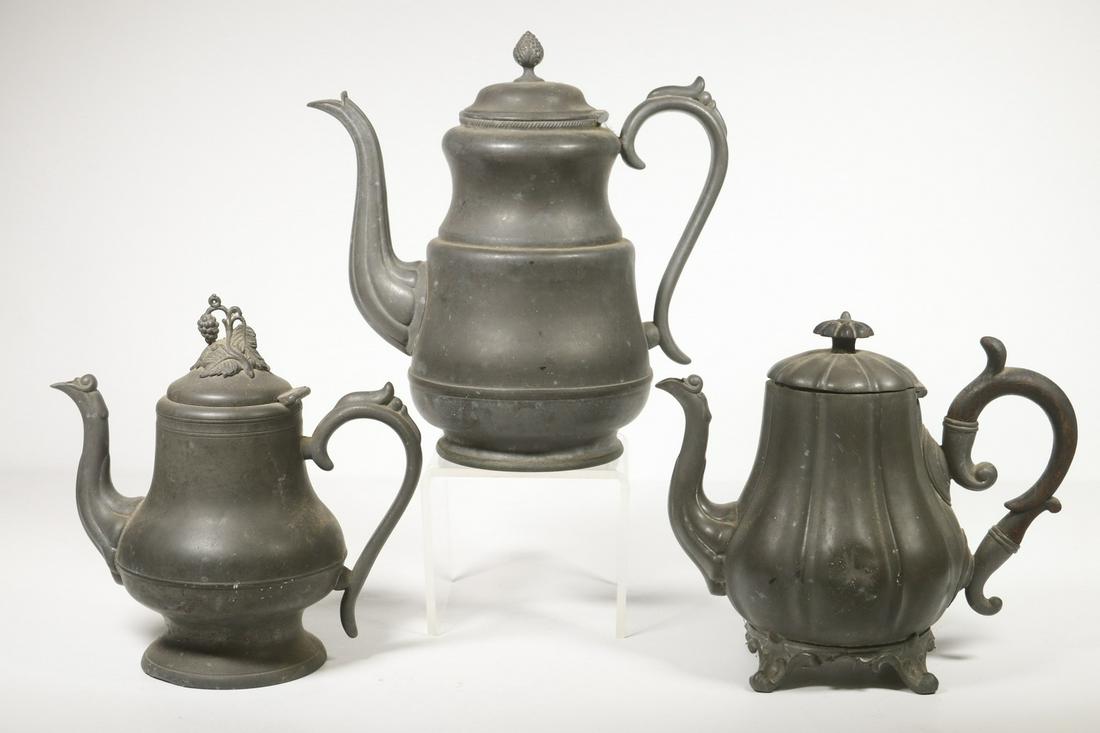 (3) 19TH C. AMERICAN PEWTER TEAPOTS