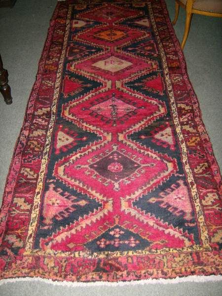 Hand-Knotted Karajeh Runner Red Wool Tribal Geometric Oriental Rug 3'7" x 9'8"Chairish Auctions4.5(10.3k)$240
