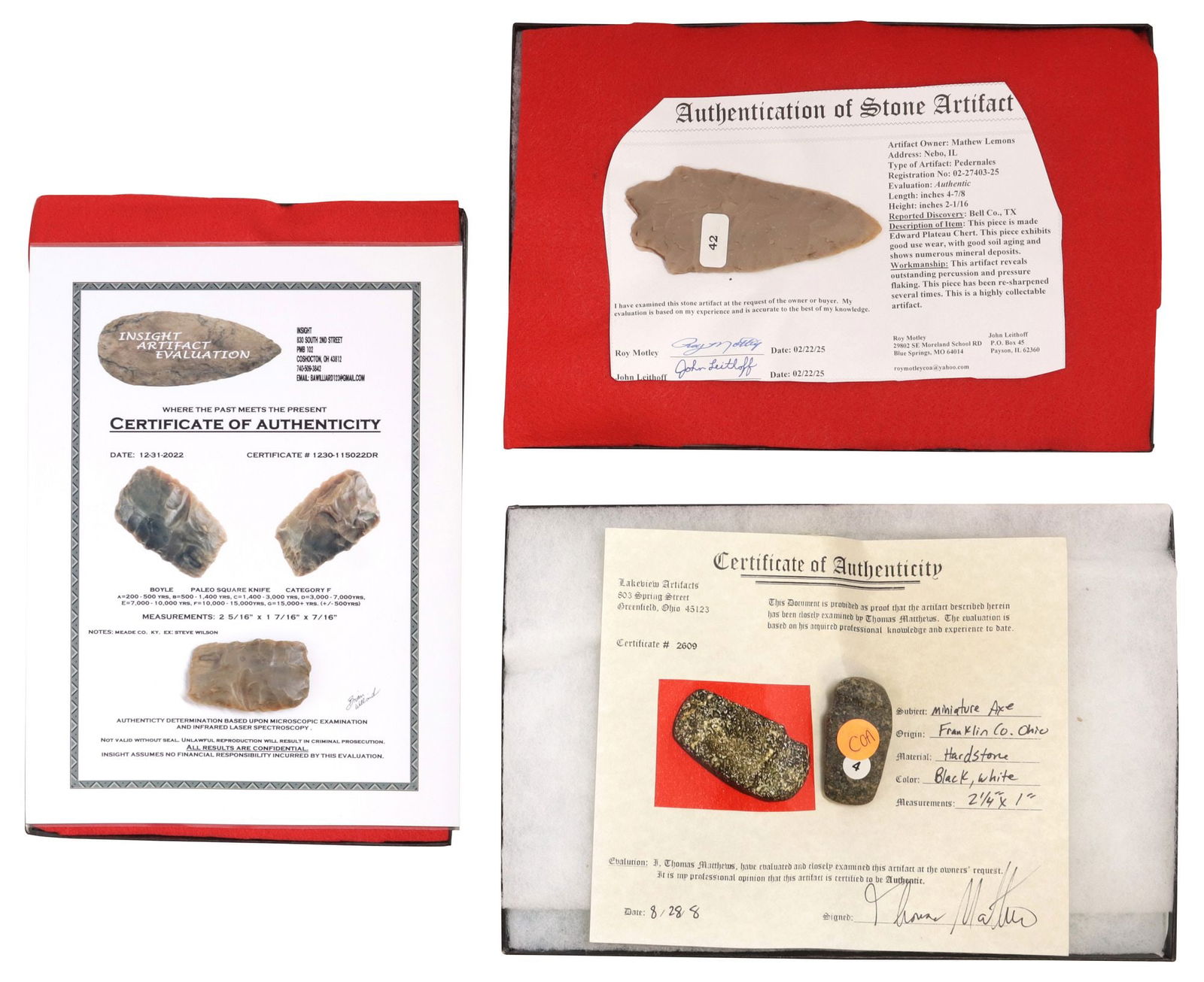 (3) ANCIENT NATIVE AMERICAN STONE ARTIFACTS