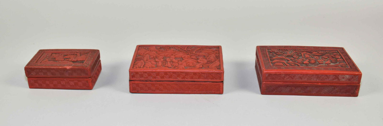 (3) ANTIQUE CHINESE CARVED CINNABAR LACQUER RETANGULAR