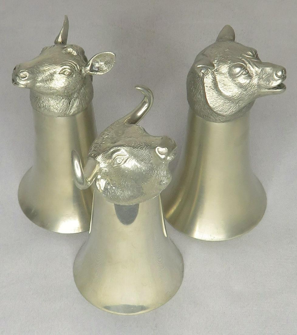 (3) Antique Silver Donkey, Steer & Bear Stirrup Cups