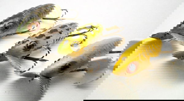 SoldA Collection of Six Vintage Fred Arbogast Jitterbug and Assorted Fishing LuresA collection of six loose, hard-bodied vintage fishing lures. The group includes two larger Fred Arbogast Jitterbug models, manufactured by Fred Arbogast, Akron, Ohio, each featuring distinct metal liSee Sold Price