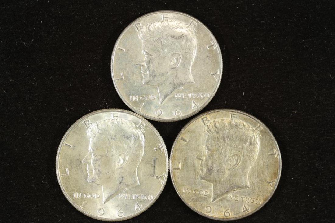 3 ASSORTED 1964 90% SILVER KENNEDY HALF DOLLARS