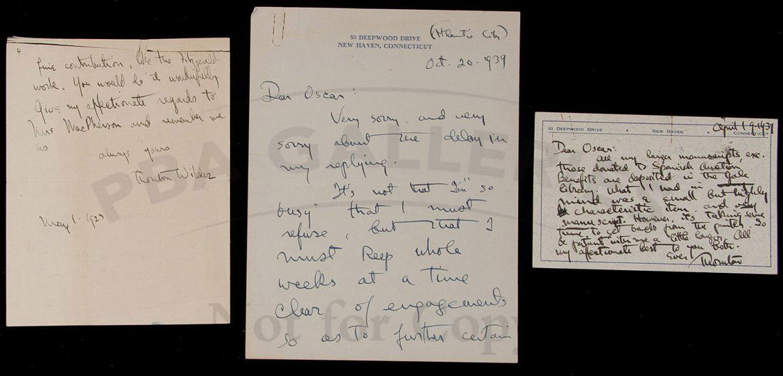 3 autograph items from Thornton Wilder 1930s