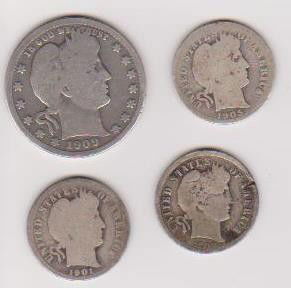 3 Barber Dimes, 1 Barber Quarter