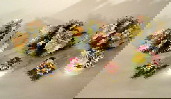 3 Capodimonte Candlesticks & 4 Porcelain Flower Groups