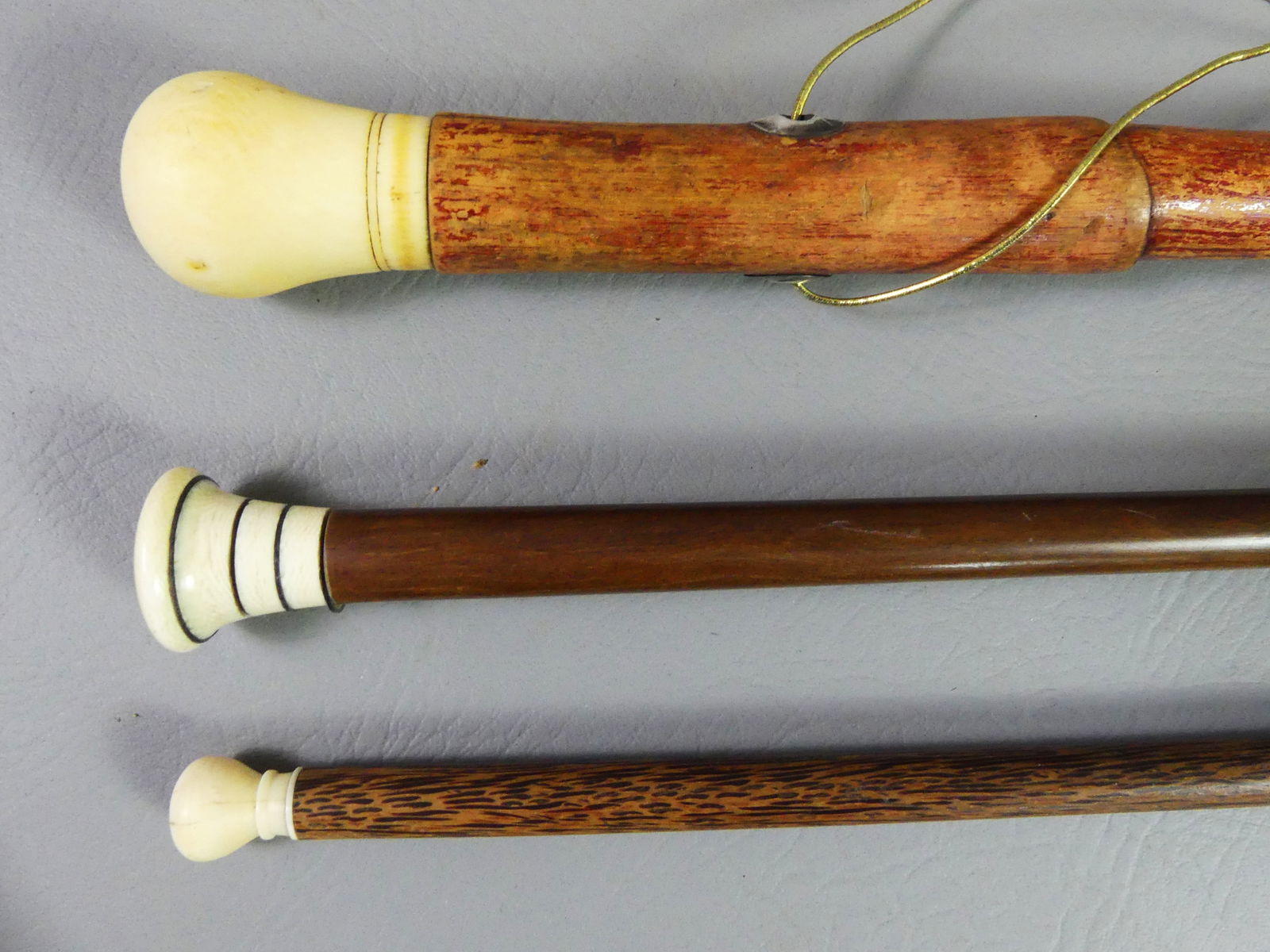 3 CARVED BONE WALKING STICKS