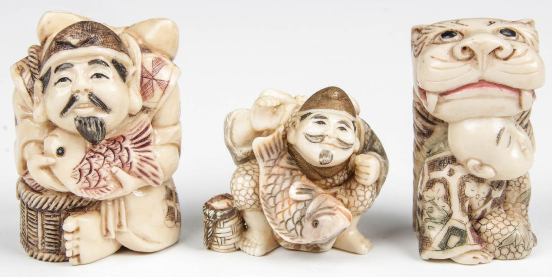 3 Carved Netsuke Depicting Humans with Animals