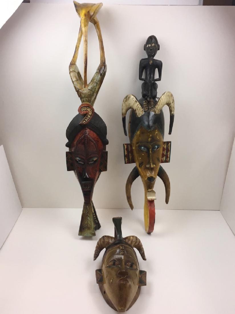 3 CARVED TRIBAL MASKS