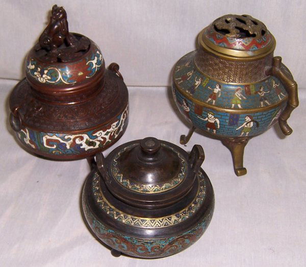 (3) Champleve' incense burners