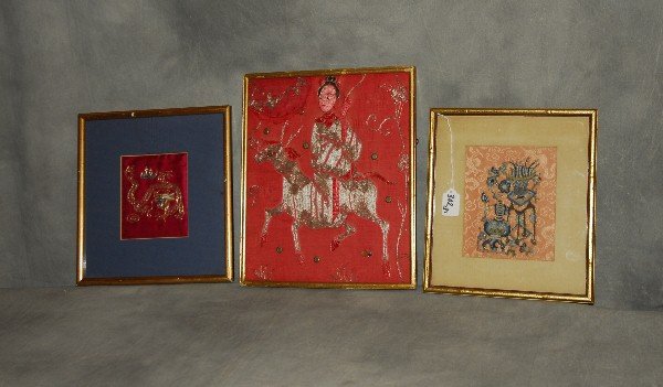 3 Chinese Framed Silk Embroidered Panels