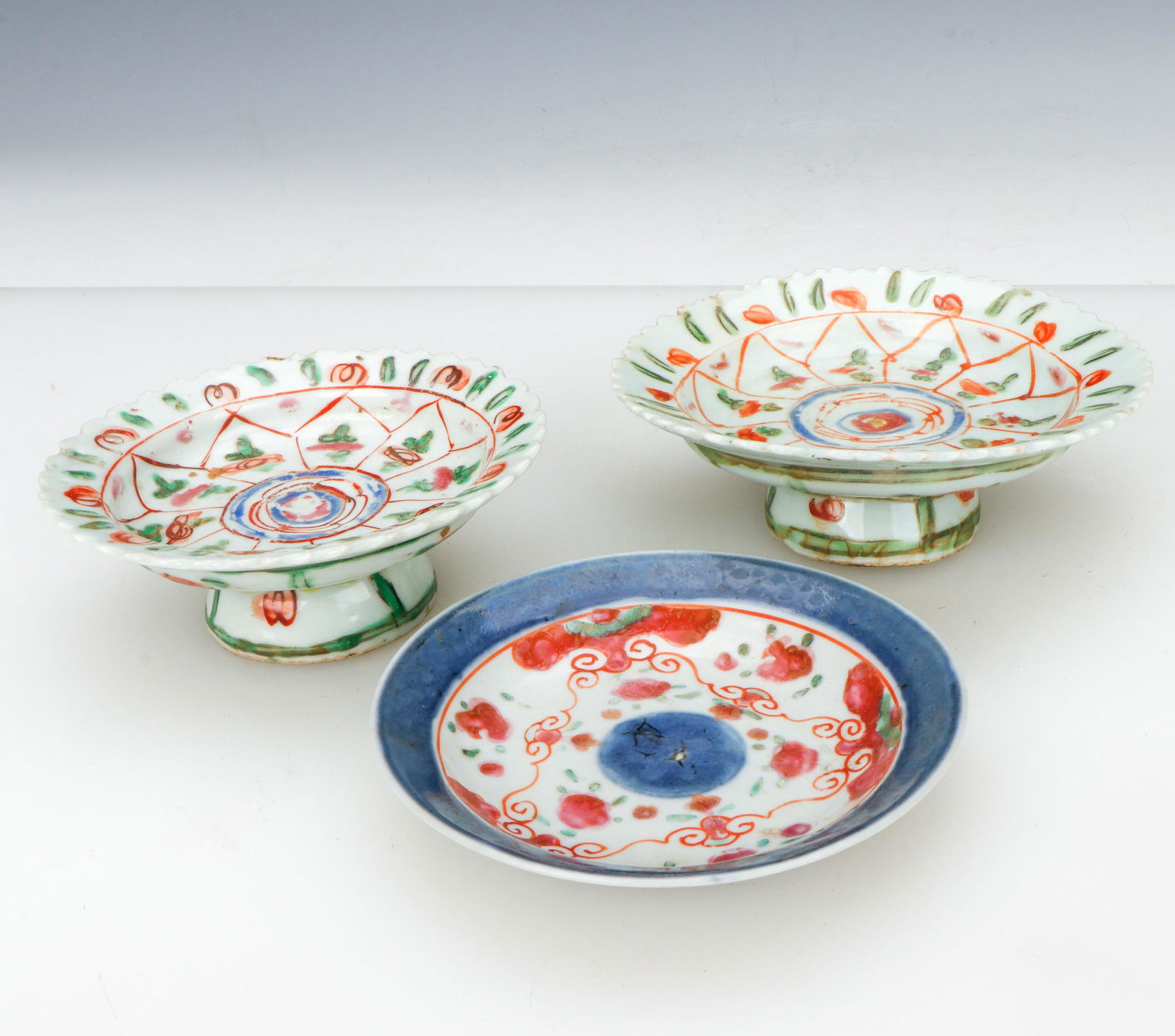 3 Chinese Polychrome Decorated Footed Plates