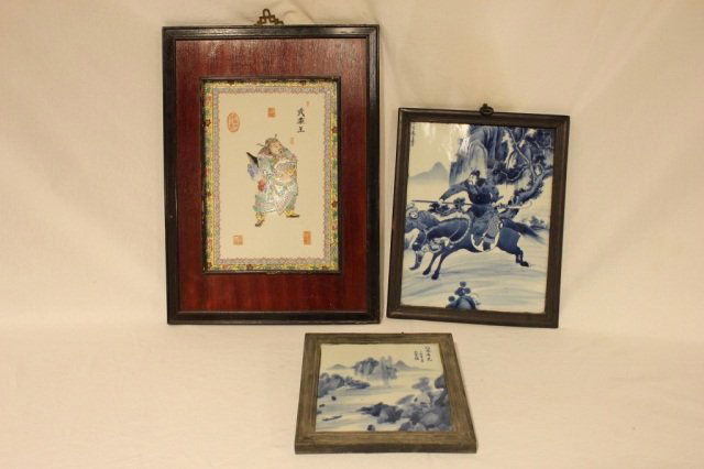 3 Chinese Porcelain Plaques - Warrior Studies