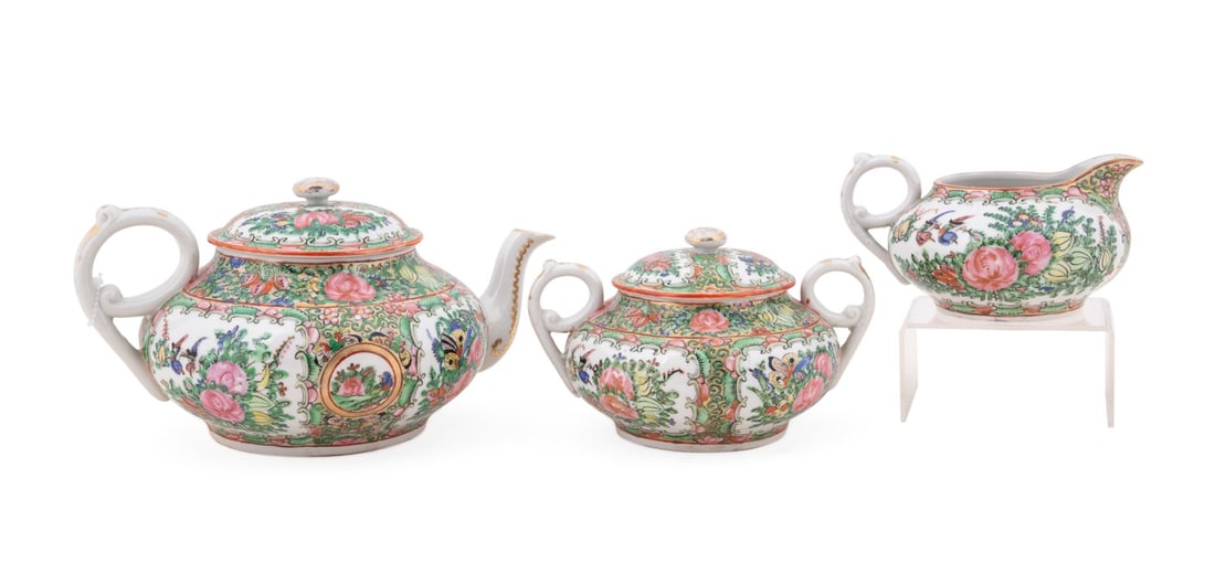 3 CHINESE ROSE MEDALLION TABLEWARE PIECES