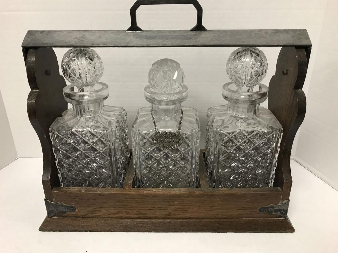 3 Crystal Decanters In Wooden Lockable Case