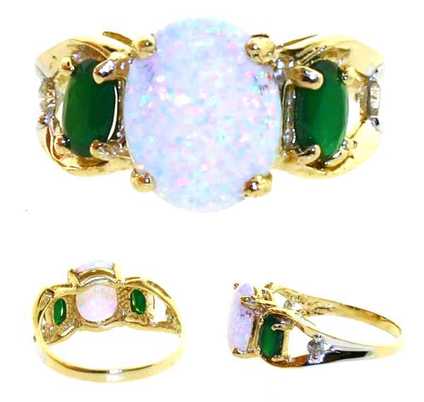 NEW 14K YELLOW GOLD LADIES OPAL CZ RING