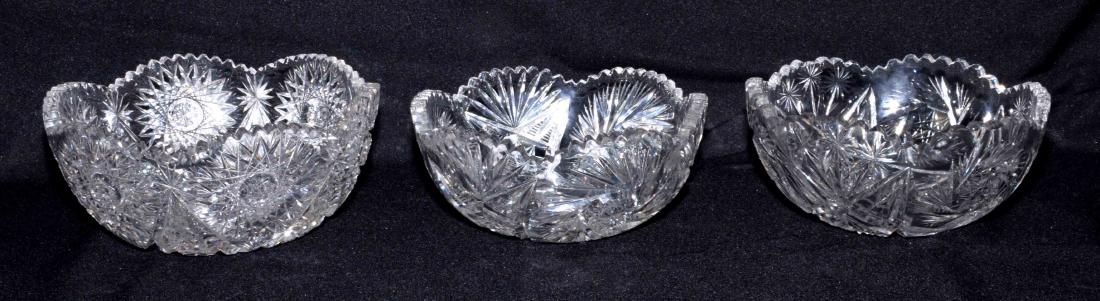 (3) CUT GLASS BOWLS. Three different patterns. Approx.