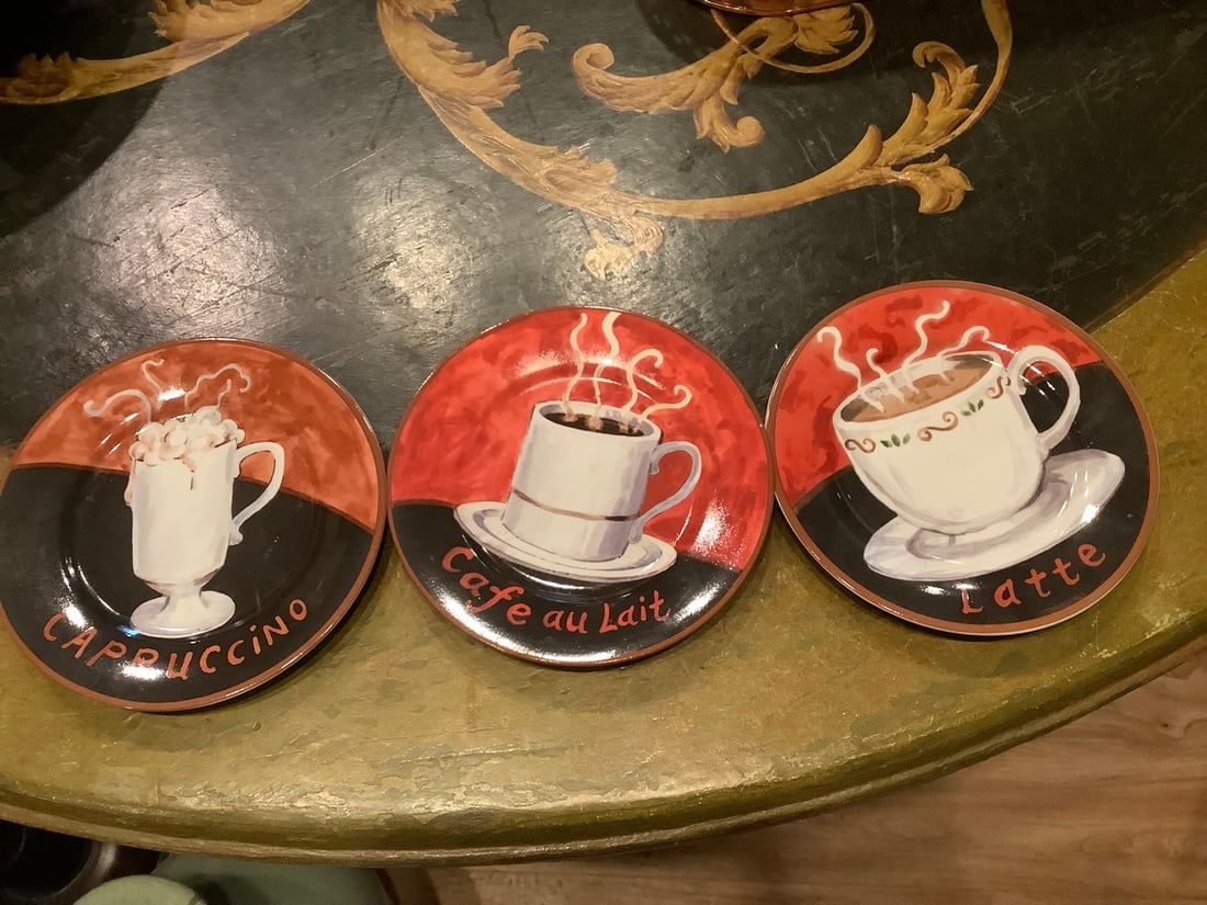 3 decorative coffee plates