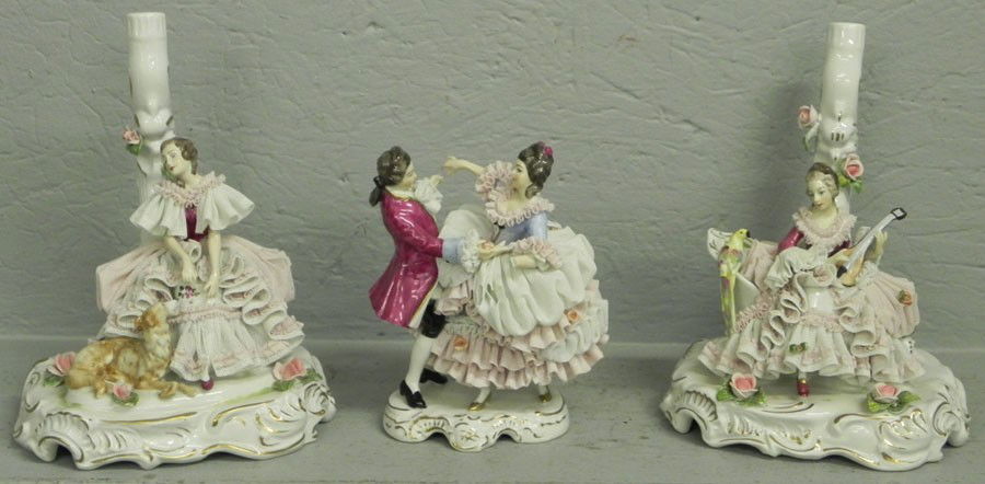 (3) Dresden type figurines with lacework