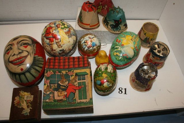 Lot Early Christmas Tree Light Sets & Empty BoxesMar 07, 2026Lot Vintage Christmas DecorationsMar 07, 2026Lot of Seven Hand Painted Wood & Paper Mache Boxes3 days LeftENAMEL LOT OF TRINKET BOXES PILLBOXES INCL. HEREND, LIMOGES, NEIMAN MARCUSFeb 21, 2026LOT OF BISCUIT AND CHOCOLATE TINSFeb 26, 2026Wooden & Glass Eggs ~ Nesting & BoxesFeb 28, 2026(6) FABERGE STYLE JEWELED & ENAMELED EGG-FORM BOXES, 4 MUSIC BOXESFeb 22, 2026Vintage (1990s) 10-Piece Ceramic/Stone Easter Decorative CollectionFeb 21, 2026Vintage Hard Plastic Light Up Santa's & SnowmenMar 07, 2026Collection Antique & Vintage Games ++Feb 28, 2026Group of Assorted Holiday ItemsMar 07, 2026Group of Assorted Christmas Themed Decor and MoreMar 07, 2026Group of Schmid Beatrix Potter Musical Collectibles and MoreMar 07, 2026Group of 7 Assorted Child Dolls13 hrs LeftGroup of Assorted AmericanaMar 07, 20264 Papier Mache Snuff BoxesMar 14, 2026