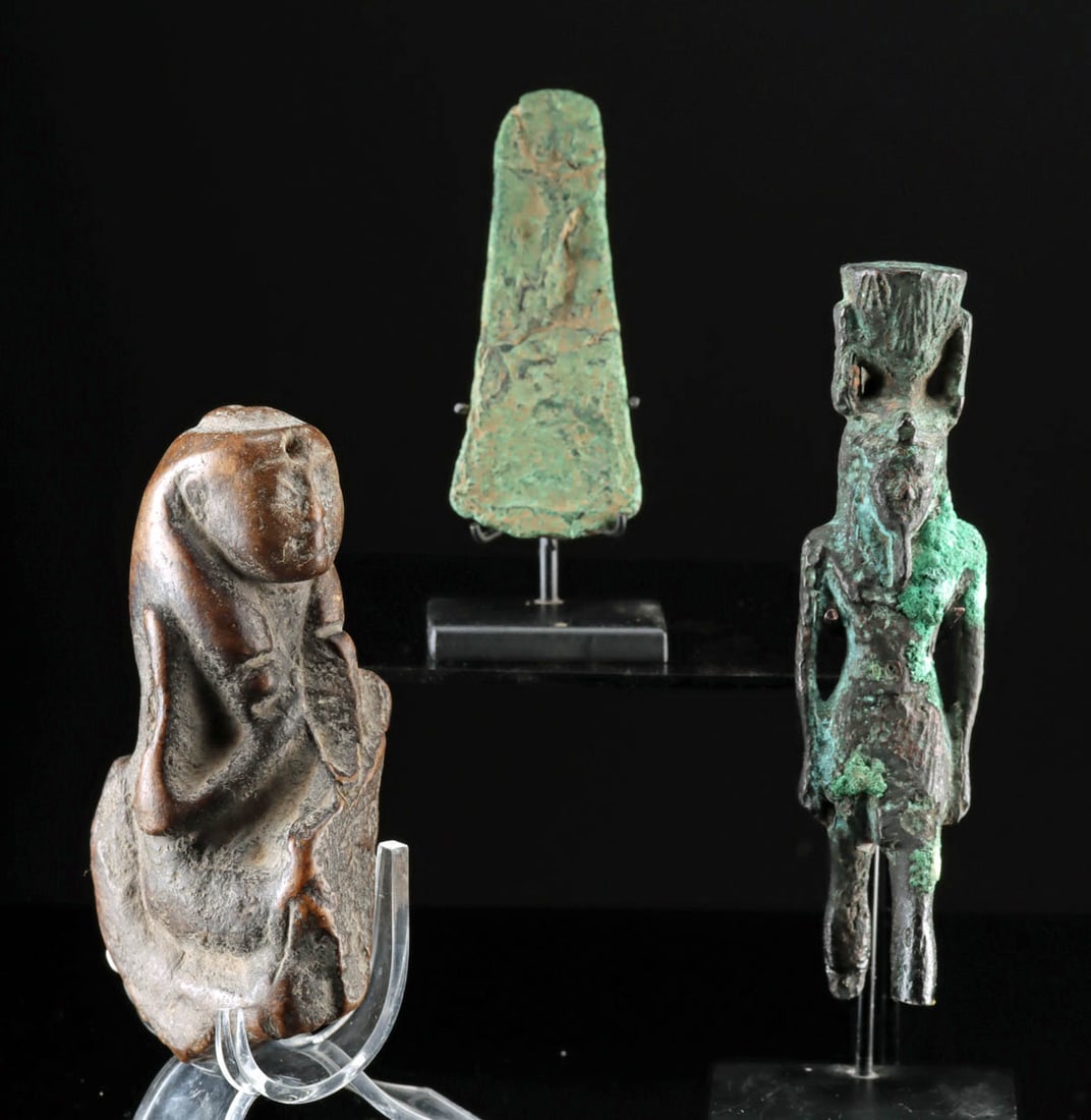 3 Egyptian Artifacts Nefertum, Isis, Axe Head