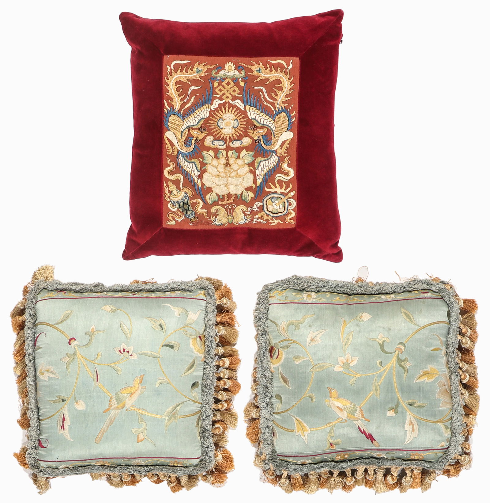 3 Embroidered Pillows, China, 19th/20th C.