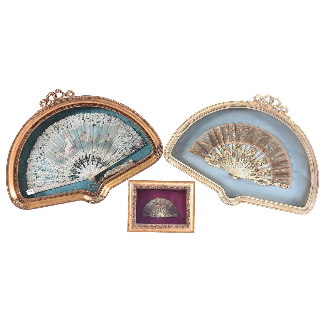 SoldThree Continental fans in giltwood framesA group of three Continental fans in giltwood frames19th/20th centuryheight of largest framed 20 1/2in (52cm); width 30 3/4in (78cm)See Sold Price