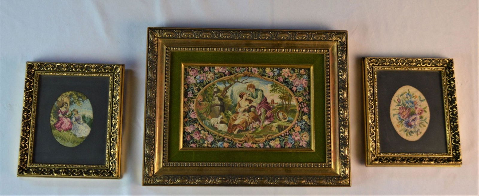 3 FRAMED FINE FOLK ART NEEDLEPOINT SCENES