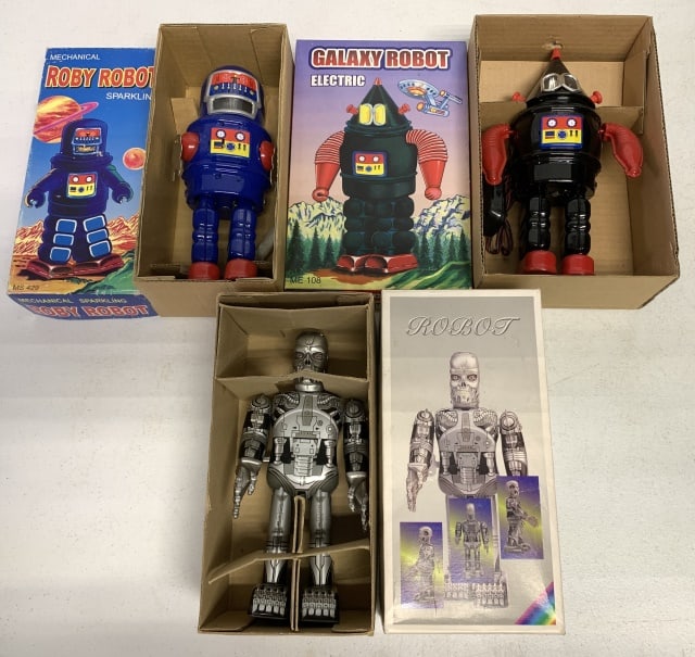 VINTAGE TOY LOT3 days LeftNew Bright / Dickie Spielzeug Sprechender Roboter Battery-Operated Toy Collection, c. 1985-1995Mar 24, 20267 - Caprice and Yonezawa, Battery-Operated Robot Collection, Original Packaging, 1977-1984Mar 24, 20266 - Takara, Aoshima, and Arii Japanese Mecha Model Kit and Toy Collection, c. 1980sMar 24, 20267 - Vintage Japanese Tin and Plastic Space Toys, Including Popy Grendizer and TPS Mercury Explorer,Mar 24, 20262 - Arkron Space Robot Die-Cast Figures Black King and Red King in Original Boxes, circa 1970sMar 24, 20264 - Pony Toy, Takatoku, and Kabaya Vintage Japanese Character Toy Collection, c. 1980sMar 24, 20264 - Takara, Takatoku, and Banpresto Vintage Japanese Robot Toy Collection, Circa 1980-1985Mar 24, 20263 - Mattel Shogun Warriors Jumbo Machinder Robot Figures, Gaiking and Dragun, c. 1976Mar 24, 20264 - Takara and Tomy Japanese Mecha and Transformable Toy Collection, c. 1974-1984Mar 24, 20267 - TOMY Vintage Japanese Toy and Model Kit Collection Featuring Zoids Gun-Galad and Z-KnightMar 24, 2026Group of Vintage Robot Toys, 93 days Left4 - Takara, Mego, and Zincron Vintage Die-Cast and Motorized Robot Collection, 1976-1984Mar 24, 202613 Vintage Japanese Mecha & Character ToysMar 24, 2026YONEZAWA TIN WINDUP WINKY ROBOT w/ BOXMar 14, 2026ESTRELLA BATTERY OP ROBO COM TV ROBOTMar 14, 2026