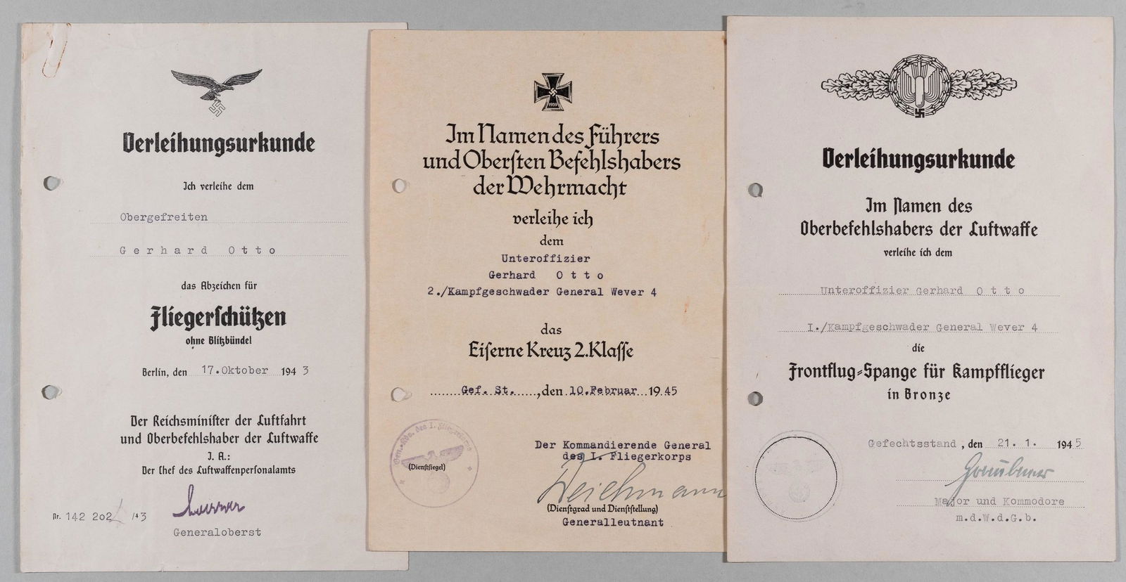 3 German Luftwaffe Award Document Group