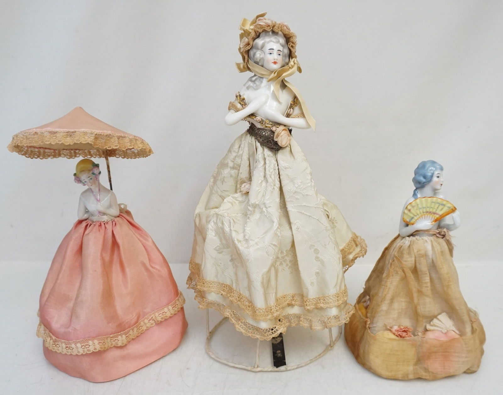 3 GERMAN PORCELAIN HALF DOLLS