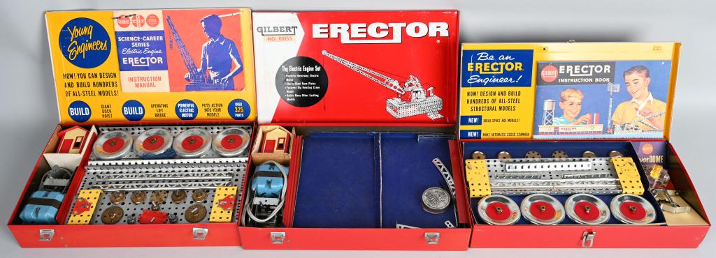 3 GILBERT ERECTOR SETS w/ METAL BOXES