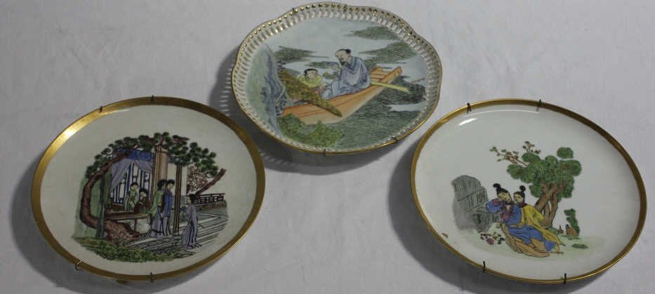 3 Hand Painted Chinese Scene Plates Signed