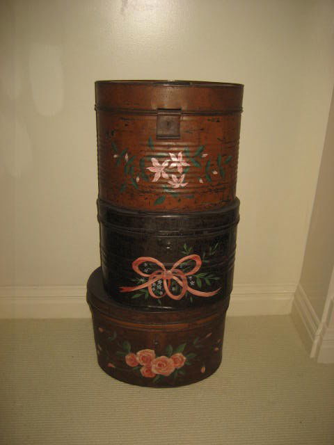 3 handpainted antique hat boxes