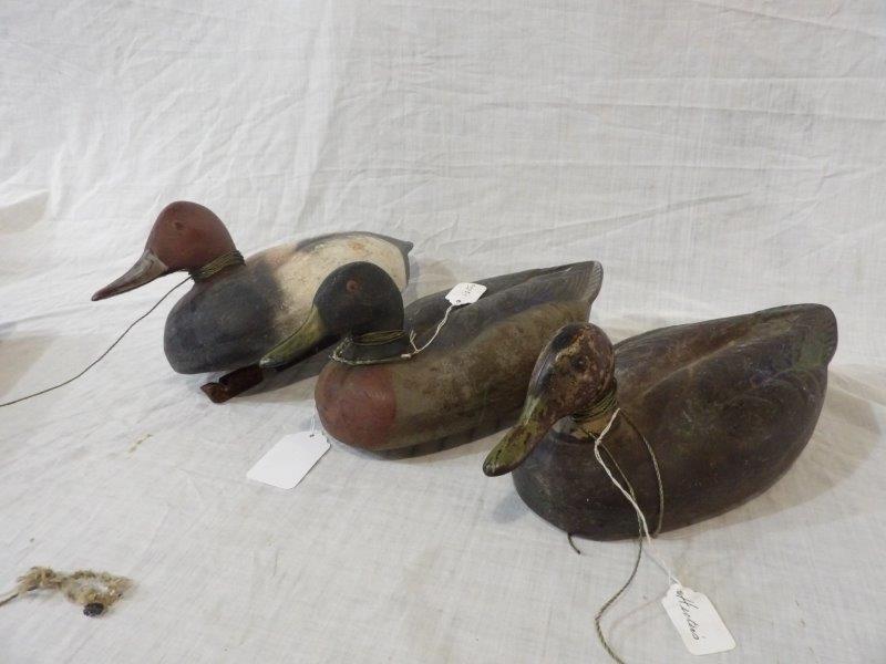 FIVE DUCK DECOYS 20th Century Lengths from 13" to 18".