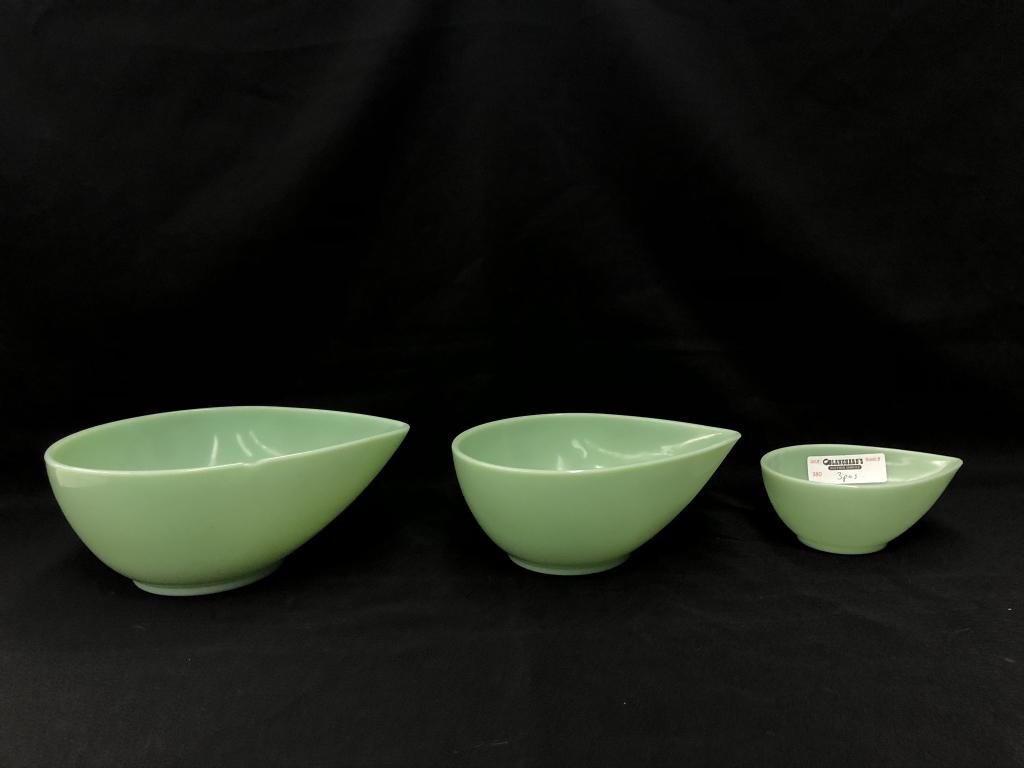 3 Jadeite Fire King Teardrop Nesting Bowls