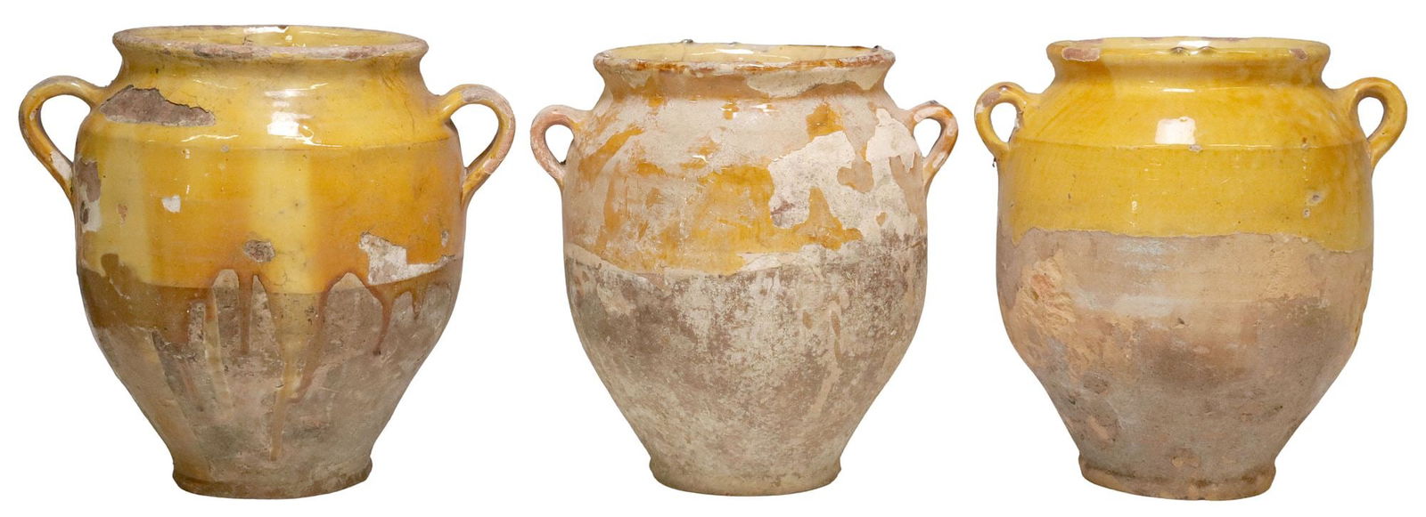 (3) LARGE FRENCH OCHRE GLAZED EARTHENWARE CONFIT POTS