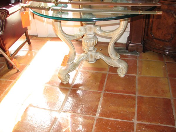 3 LEGGED DECORATIVE TABLE, CREAM BASE, THICK 3/4"