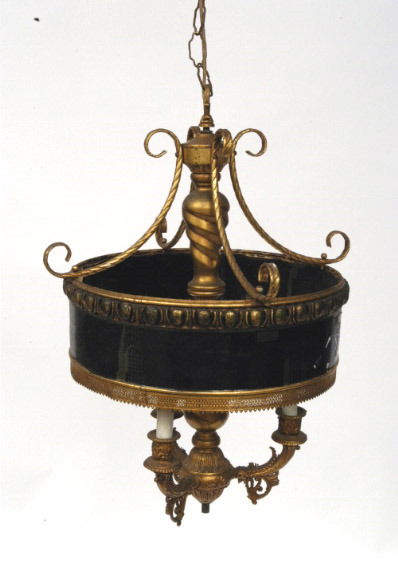 SoldEgyptian revival 3 light chandelierEgyptian revival 3 light gasolier iron chandelier, electrified, with egyptian figures cold painted in gold and black complete with large etched gas shades, appx 20" t x 24" dia, shades 8" dia. Good coSee Sold Price