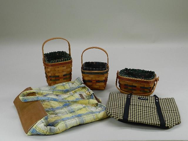 3 Longaberger Baskets & 2 Bags