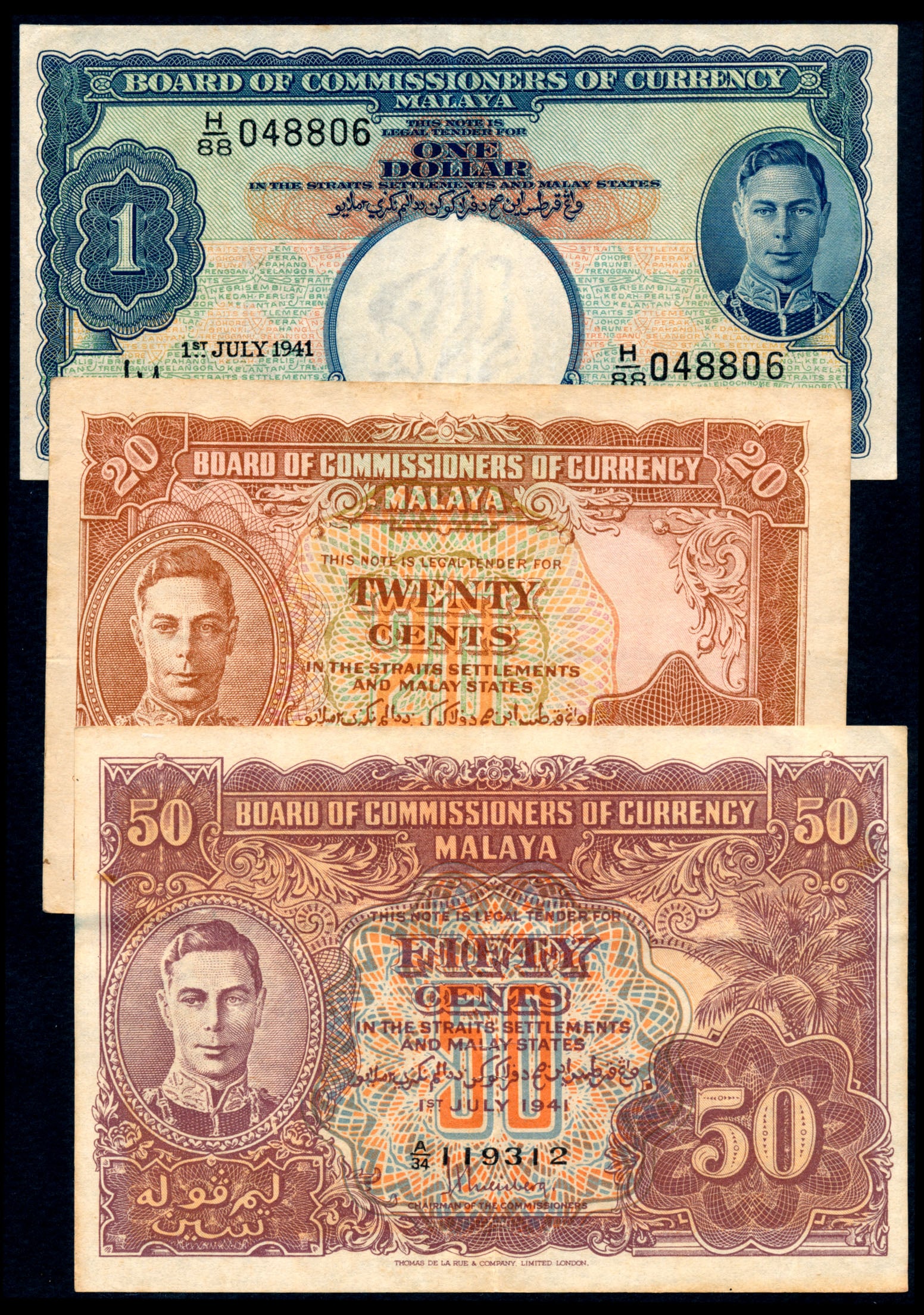 3 Malaya 20c-$1 1941