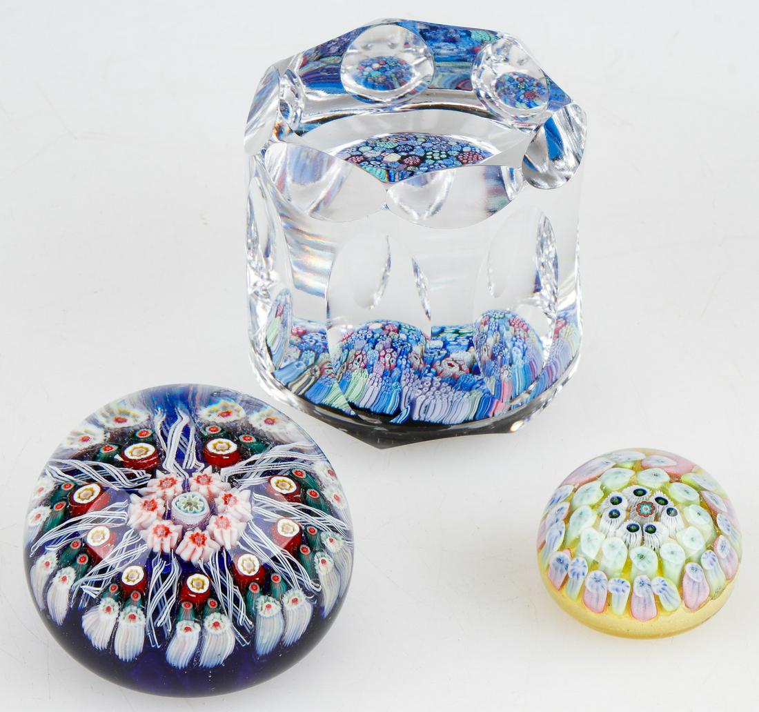 3 Millefiori Crystal Paperweights