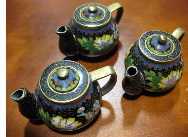 3 Miniature Cloisonne Teapots