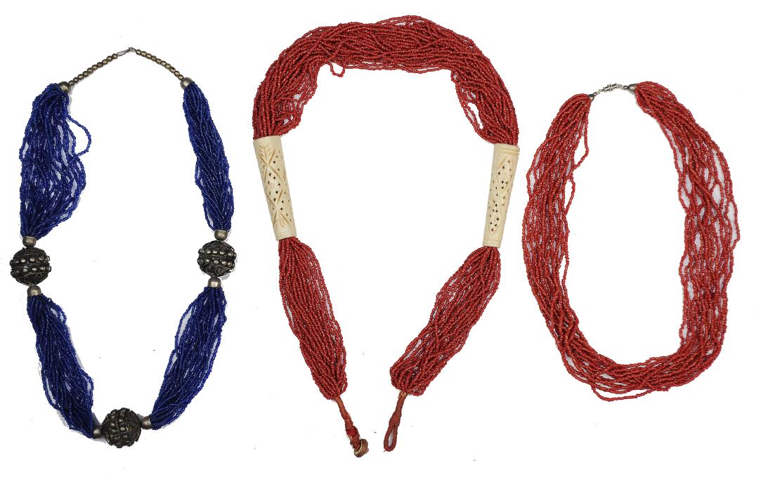 (3) Native American Multi-Strand Coral Necklaces
