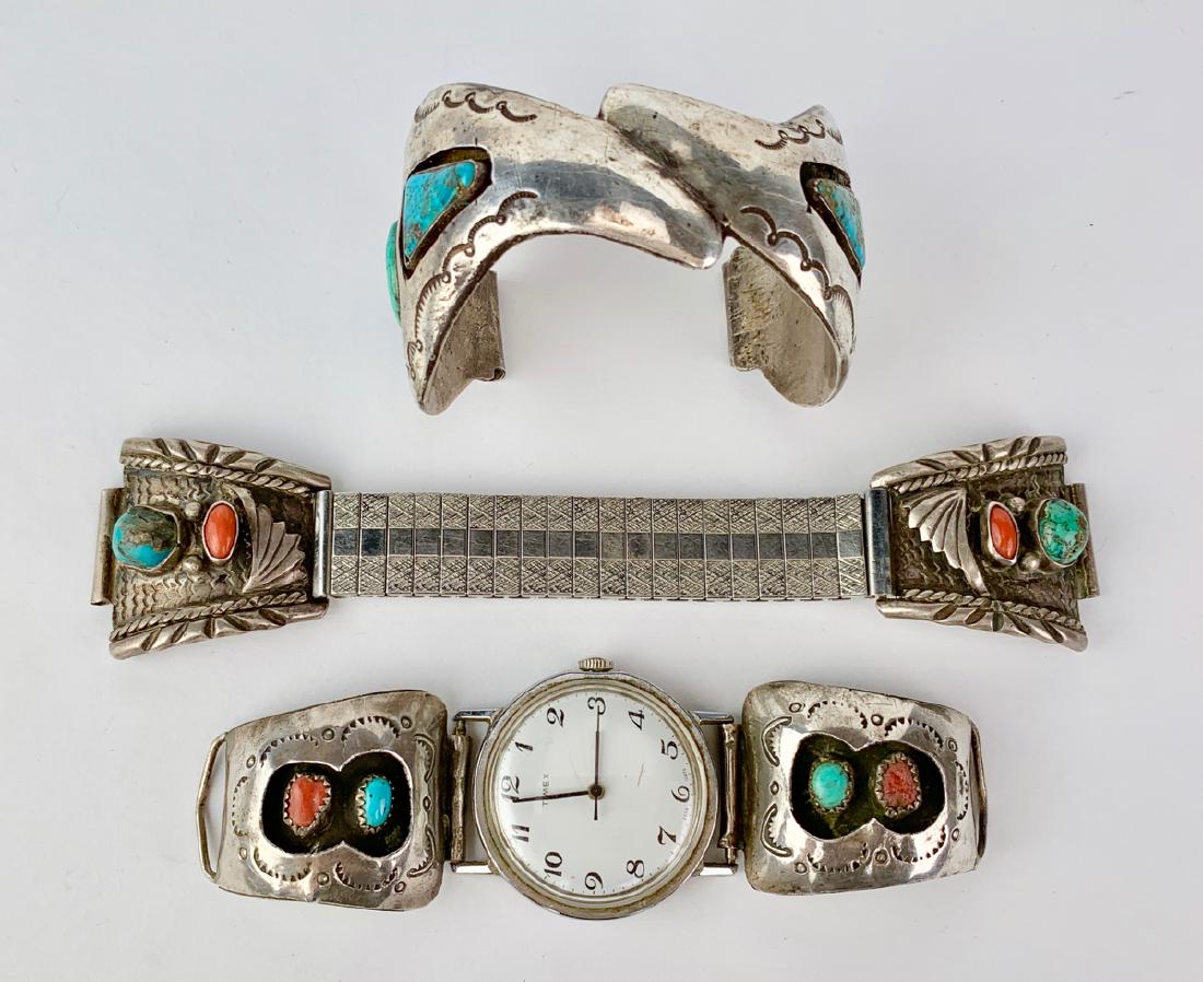 (2) NATIVE AMERICAN SILVER OVERLAY & TURQUOISE WATCH BAND TIPSMar 28, 2026Three vintage Southwest silver and turquoise braceletsApr 02, 2026Navajo Running Bear Trading Sterling Watch Band2 days LeftBell Trading Post Nickel Silver Turquoise Jewelry2 days LeftVintage 1970's Fox Turquoise Sterling Watch Band2 days LeftVintage Pawn Navajo Turquoise Silver Jewelry Set2 days LeftNative American Silver Turquoise Cuff Bangles, 3Apr 30, 2026Antique Chinese export enamel and gemstone silver finger guard brooches, scrimshaw bracelet, enamelMar 23, 20266-6.6"/54g Native American Sterling Silver Turquoise Mother of Pearl Watchband Sets & TimexWatch LotMar 21, 20266.5"/52g Native American Kee Tsosie & Sarah Curly Navajo Sterling Silver Bracelet Watch LotMar 21, 2026Two Navajo silver & turquoise braceletsMar 22, 2026Antonio Pineda - .970 Silver & Turquoise Bracelet21 hrs LeftVintage Navajo Turquoise & Coral Watch BraceletMar 29, 2026Dubose Navajo Vintage Kingman Turquoise BraceletMar 29, 2026Native America Navajo Sterling Silver Turquoise 7 Stone Bracelet Cuff By Shenna Jack. From R.B4 days LeftVINTAGE BEAUTIFUL NAVAJO STERLING SILVER TURQUOISE WATCH CUFF BRACELET7 days Left