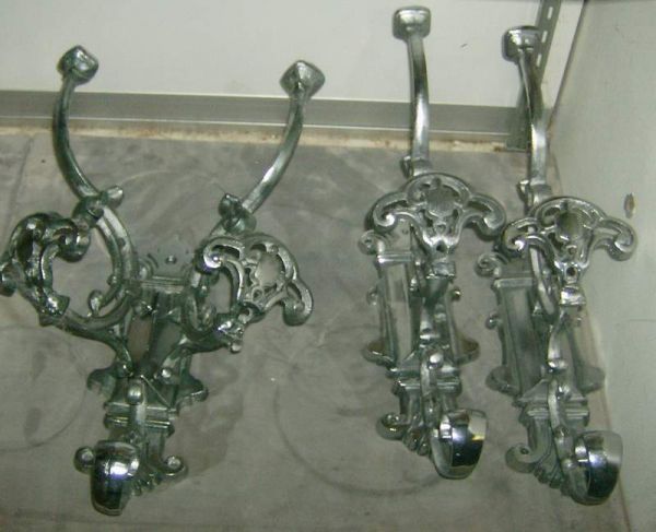 3 nickle plate hooks double & 2 single