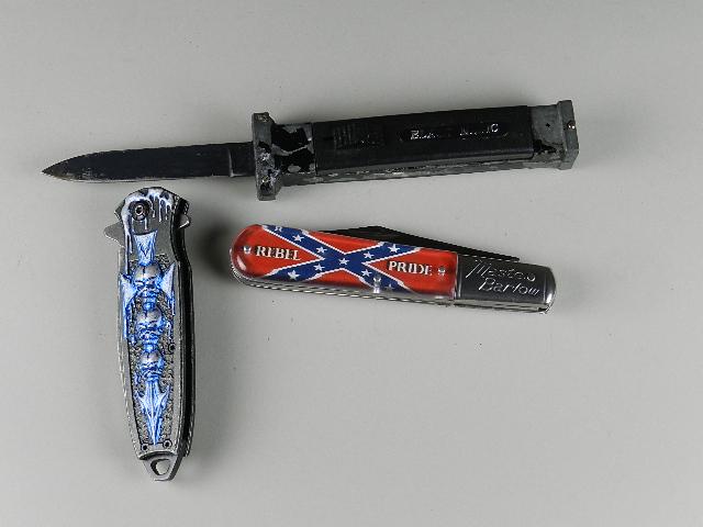 LOT 4 KNIVES WITH DECORATIVE HANDLESMar 05, 2026LOT OF 3: FIGURAL KNIVES.6 days LeftLOT OF 3: SCHRADE DOUBLE BLADE SWITCHBLADES.6 days LeftLOT OF 26: NOVELTY AND MINIATURE FOLDING AND SHEATH KNIVES.6 days LeftLOT OF 4: C. 1960S FRENCH AND SPANISH STILETTO SWITCHBLADES.6 days LeftLOT OF 3: STAINLESS CUTLERY, RICHARD’S & CONOVER, WESTERN, POCKET KNIVES.6 days LeftLOT OF 3: KA-BAR AND UNION CUT CO. POCKET KNIVES.6 days LeftLOT OF 3: KEEN KUTTER ETCHED WHITTLER, LOBSTER, AND SENATOR POCKET KNIVES6 days LeftLOT OF 3: GERMAN AND SPANISH FISH TAIL AITOR SWITCHBLADES, BONSA6 days LeftLOT OF 2: JOHN EK COMMANDO KNIFE AND SOG FIGHTING KNIFE.Mar 03, 2026LOT OF 2: EARLY GERMAN MADE WILD BOAR FOLDING BLADE HUNTING KNIVES STAG HANDLES.6 days LeftLOT OF 2: MILLER BROS. AND NOVELTY PAT. NOV 11-84 GRAVITY KNIVES6 days LeftLOT OF 4: BROCH NCHF, SCHRADE CUT CO., AND G. SCHRADE PULL BALL SWITCHBLADES.6 days LeftLot Of 5 Military Knives And Bayonets With Scabbard And SheathsLOT OF 3: ITALIAN PICK LOCK, ACKERMANNCHEN ROSTFREI LOCK BACK SWITCHBLADE, AND SCHRADE DOUBLE6 days LeftLOT OF 4: POCKET KNIVES INCLUDING HEDENGRAN & SON, BANNER FOLDING GUARD, AND SCHRADE CUT CO. DOUBLE6 days Left